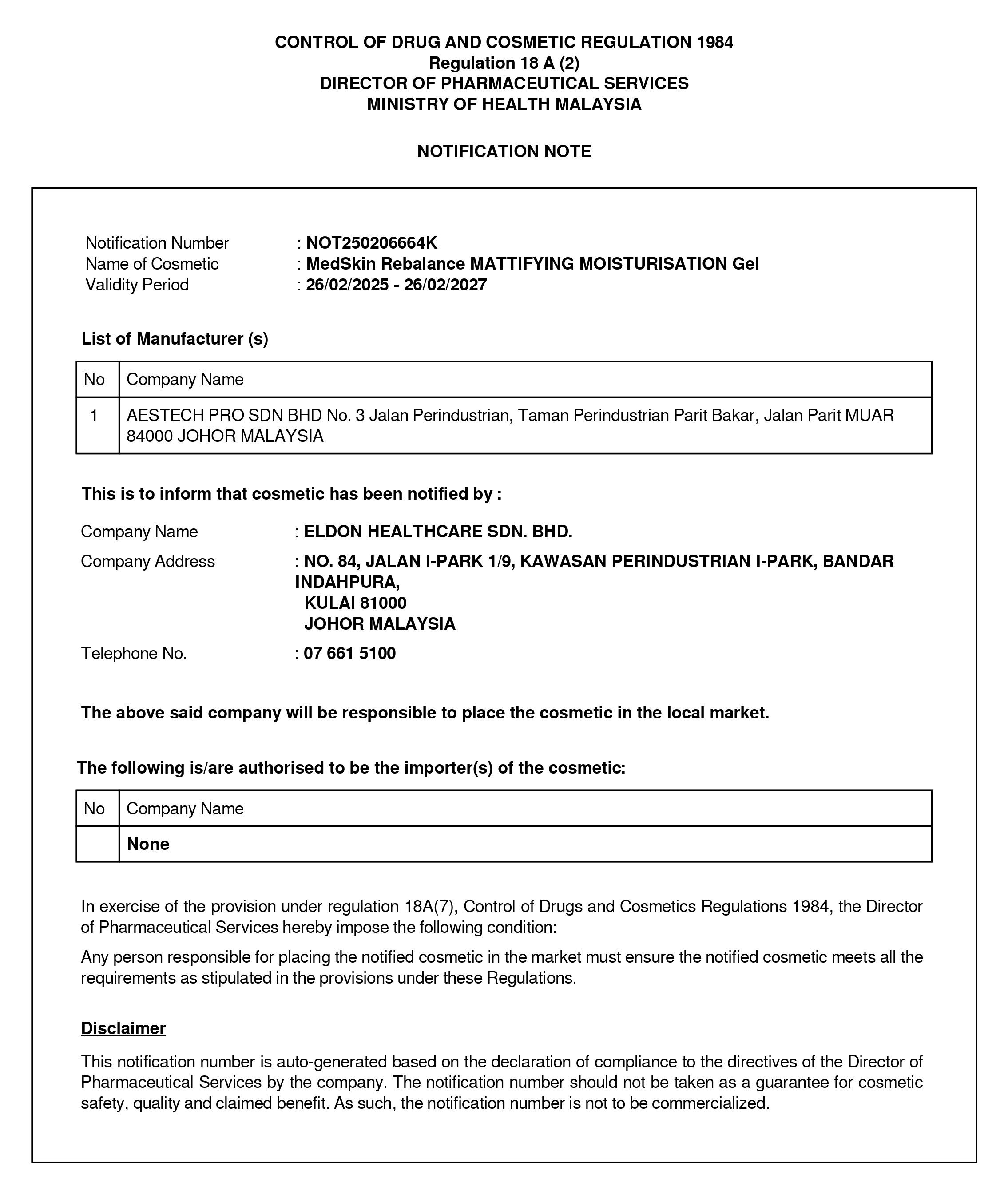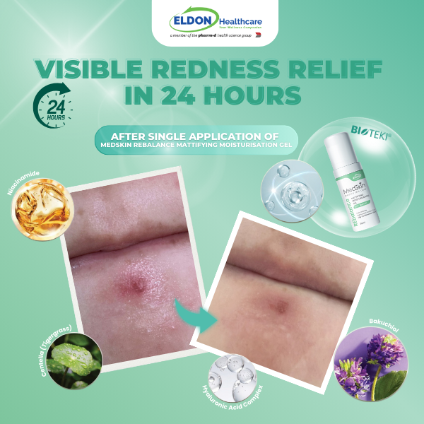 Eldon Medskin Rebalance Mattifying Moisturisation Gel help to flatten acne and reduced pore Eldon Medskin Rebalance Mattifying Moisturisation Gel reduce sebum (oil) production and redness Eldon Medskin Rebalance Mattifying Moisturisation Gel help to reduce redness in 24 hours