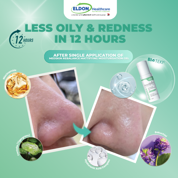 Struggling with dry and oily patches? Eldon Medskin Mattifying Moisturisation Gel is your skin’s new best friend! This series is powered by BIOTEKI™ (a DUO Fermentation blend of Lassica K014™ Postbiotic and fermented rice) and also science-backed active ingredients (niacinamide, bakuchiol – retinol alternative, Centella Asiatica tiger grass, hyaluronic acid complex etc.).