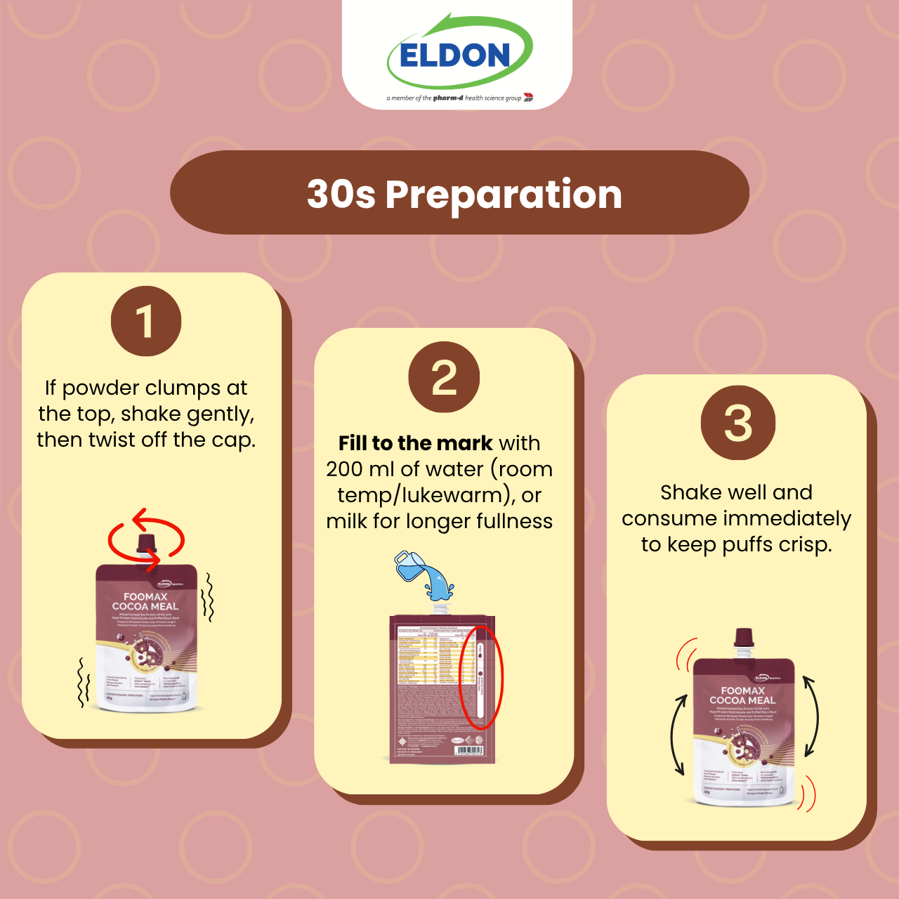 Eldon Nutrition FooMax Meal Replacement Preparation Method Just add water or milk or favourite drink